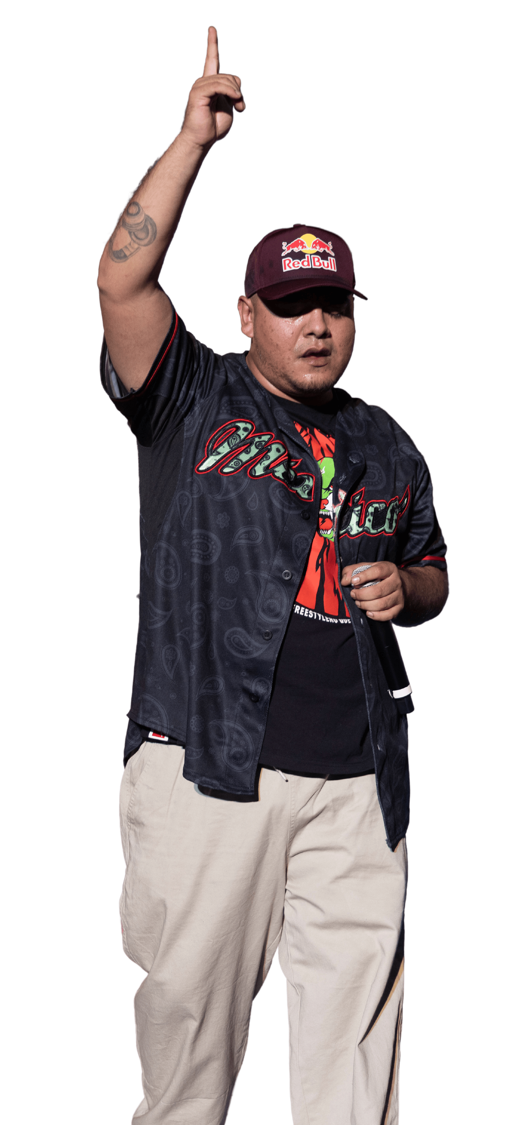 En esta primera ronda, DJ Zone suelta una base de Nerso & Verse que samplea “Bella Ciao”, clásico popular italiano asociado a mil revoluciones. Zone tenía tres beats para poner, pero fue éste el que le pareció “el indicado para el momento”. La marcha agridulce de la pista despertó las emociones correctas “para que la batalla se prendiera de una”, termina Zone. “Y creo que contribuyó mucho para que ese cruce fuera como fue. En especial por la intro, que hace que la entrada al beat sea una fiesta.”